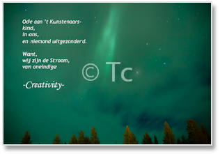 Dichtbundeltje. Weerspiegelt de aanmoediging en toestemming aan ‘t kunstenaarskind, in ons, om op te staan.
